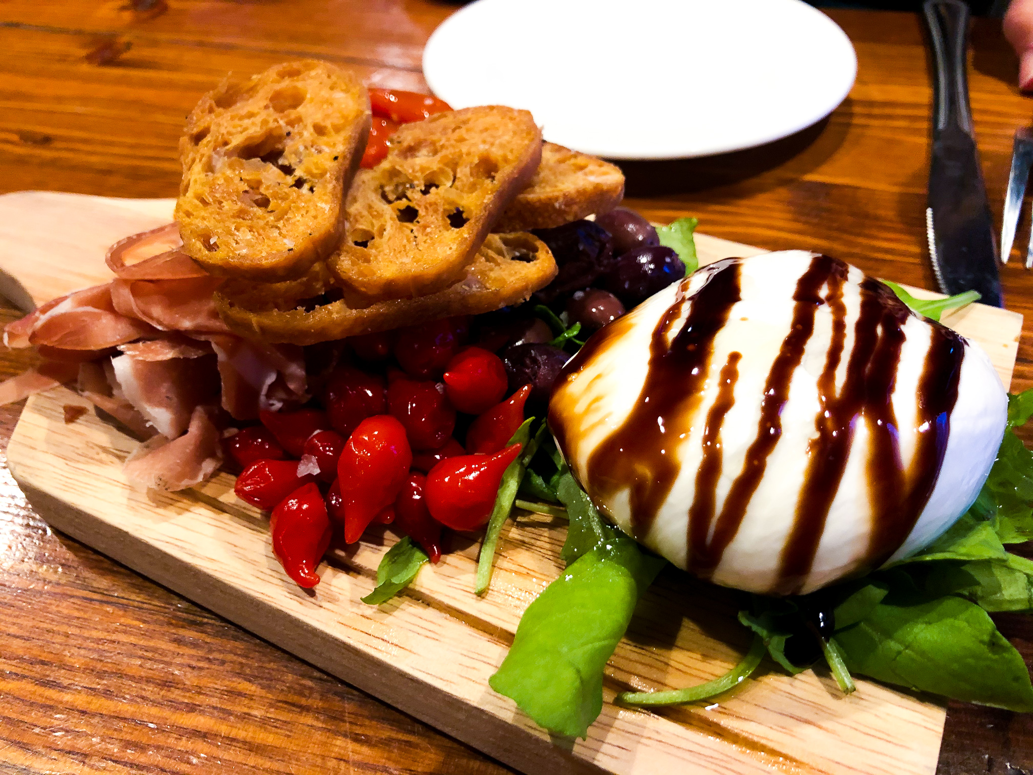After looking at all the options for food we decided to go to a Italian place on the way back. We actually saw it while we were driving in the night before and it had really cute lights and a great set up so we were already leaning towards going there without even looking at the menu. When we saw that it was pizza we were sold! We enjoyed some yummy pizza, a charcuterie board, and some brussels sprouts that had a lot of potential but too much sauce. After dinner, we went back to the Airbnb, turned on a movie, and got ready for our next few days of working from the Airbnb.