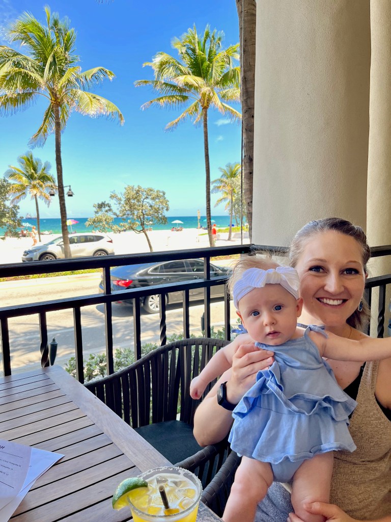 We hopped on the shuttle to grab our rental car and then it was off to the Hilton Fort Lauderdale Beach Resort. Our room was perfect for a little family because it had a living room and kitchen area which was great for cleaning bottles, pump parts, and making breakfast! We had a stellar beach view too. The only thing I would have changed is that we could not see the view from the bedroom so we couldn’t relax and watch the ocean as I would have liked. Other than that, the hotel was in the perfect location and the staff was so nice.Â