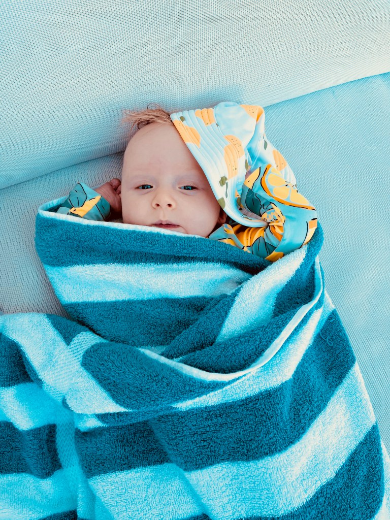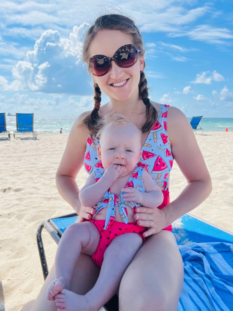 After about 10 mins of ocean time, we went back to the chairs, fed Harps, and relaxed for 1.5 hours or so. It was so nice. And yes, I did get Harper and I matching swimsuits!